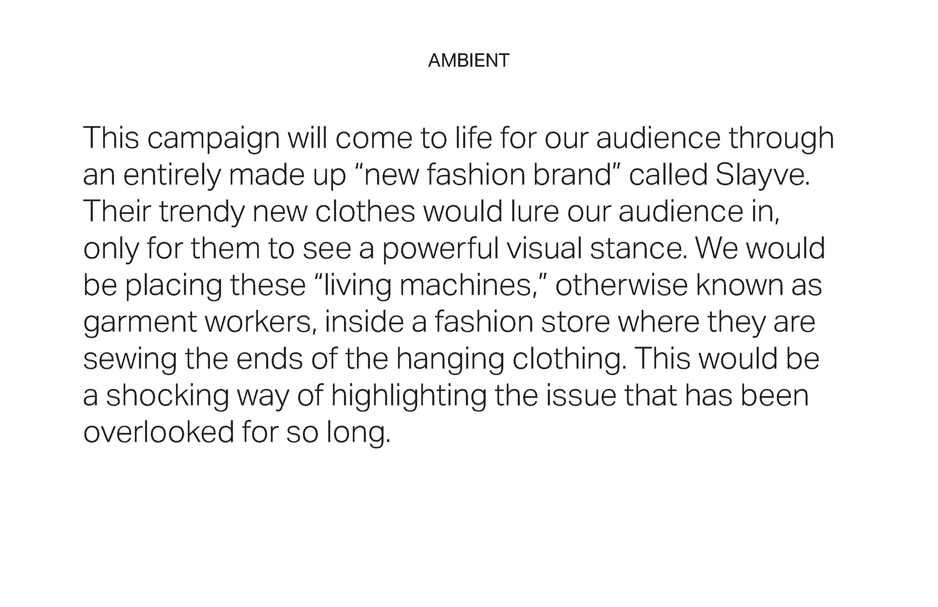 An integrated cause-related campaign addressing the fast fashion industry head-on.