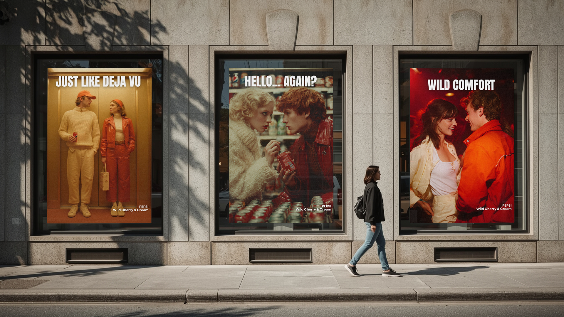 Print ads & social media spots for Pepsi's new Wild Cherry & Cream. AI images, videos & all editing done by Hannah.