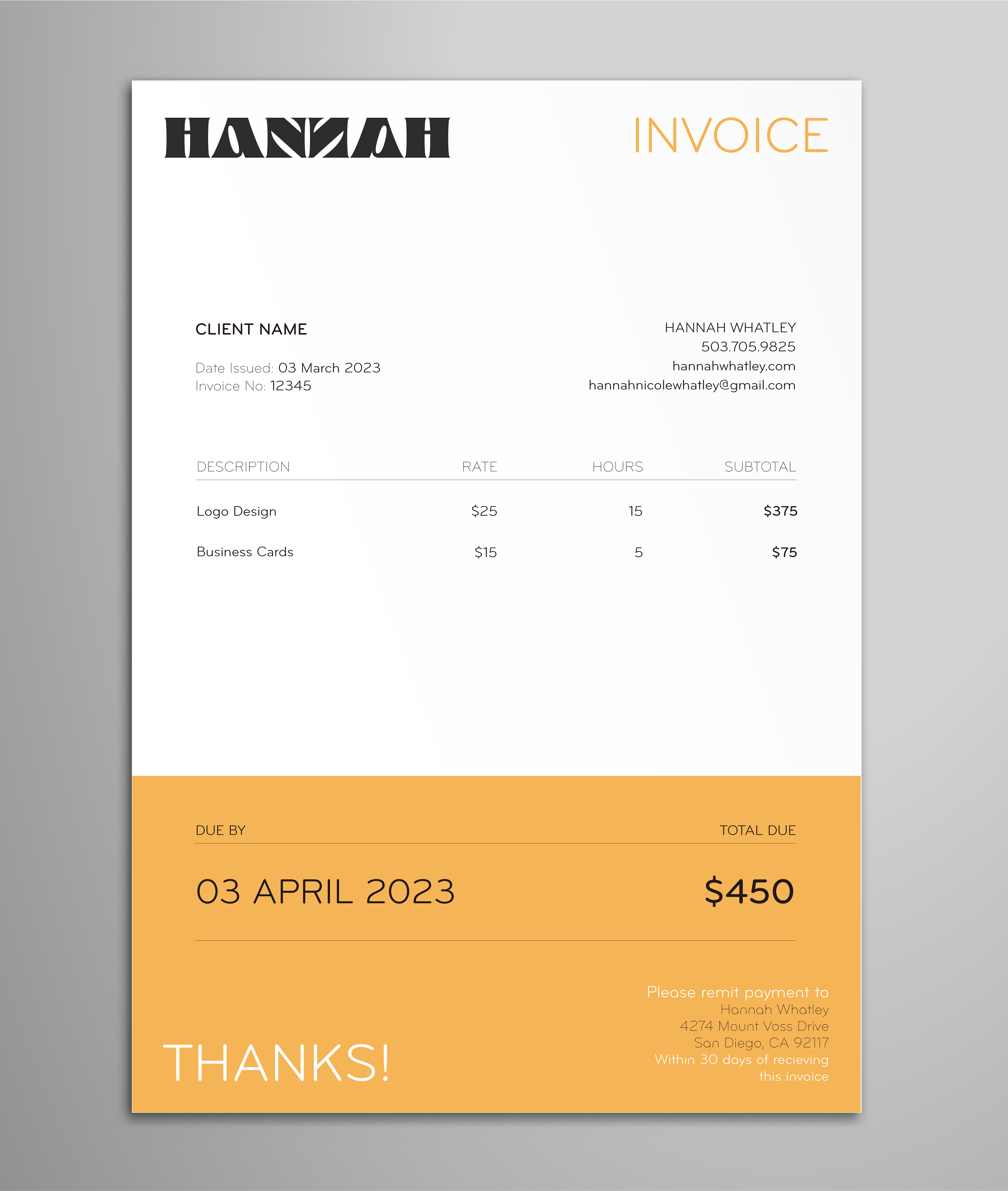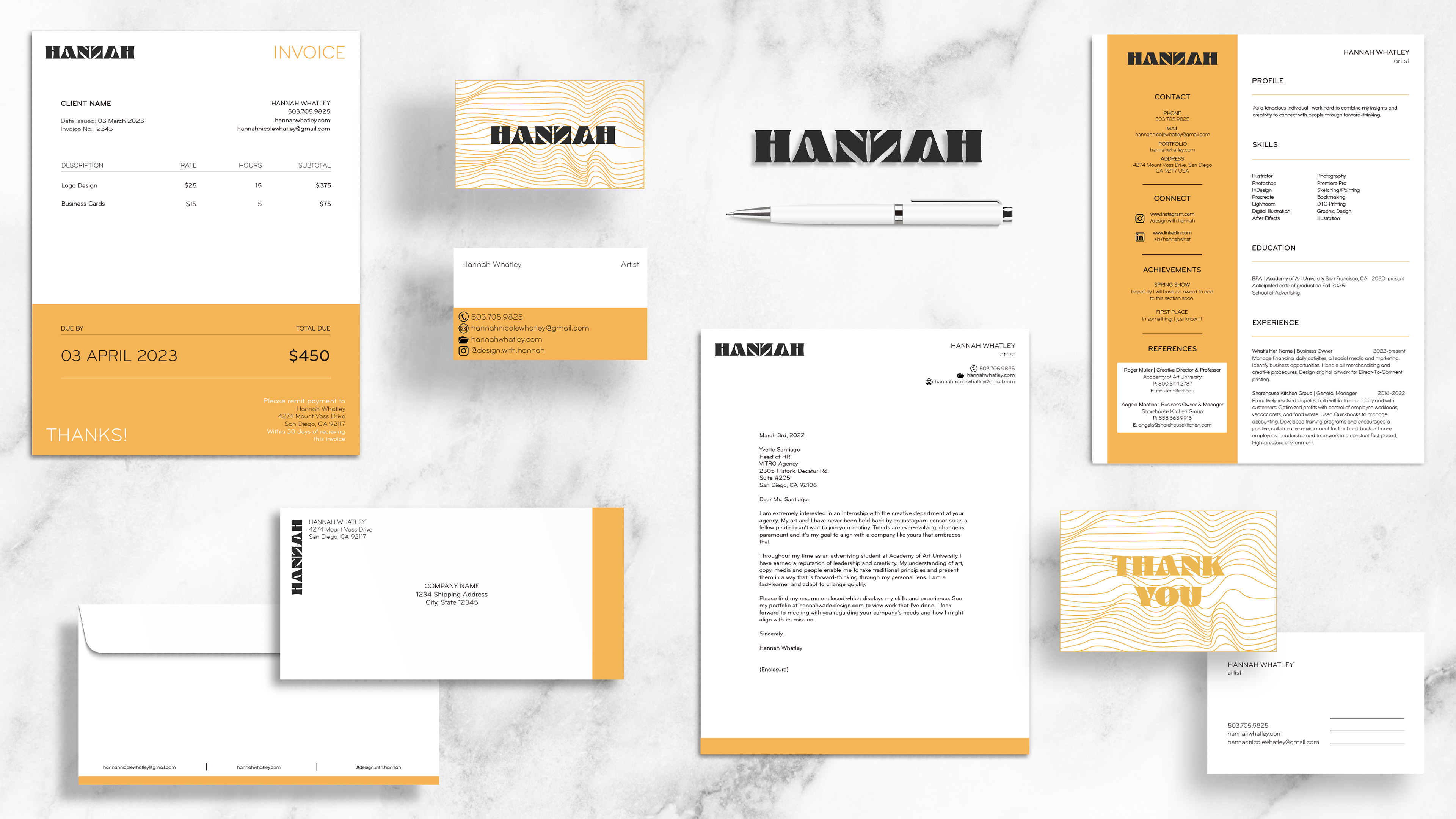 Personal identity system with logo and graphics created by yours truly.